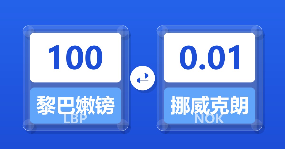 100 黎巴嫩镑 (LBP) = 0.01 挪威克朗 (NOK)