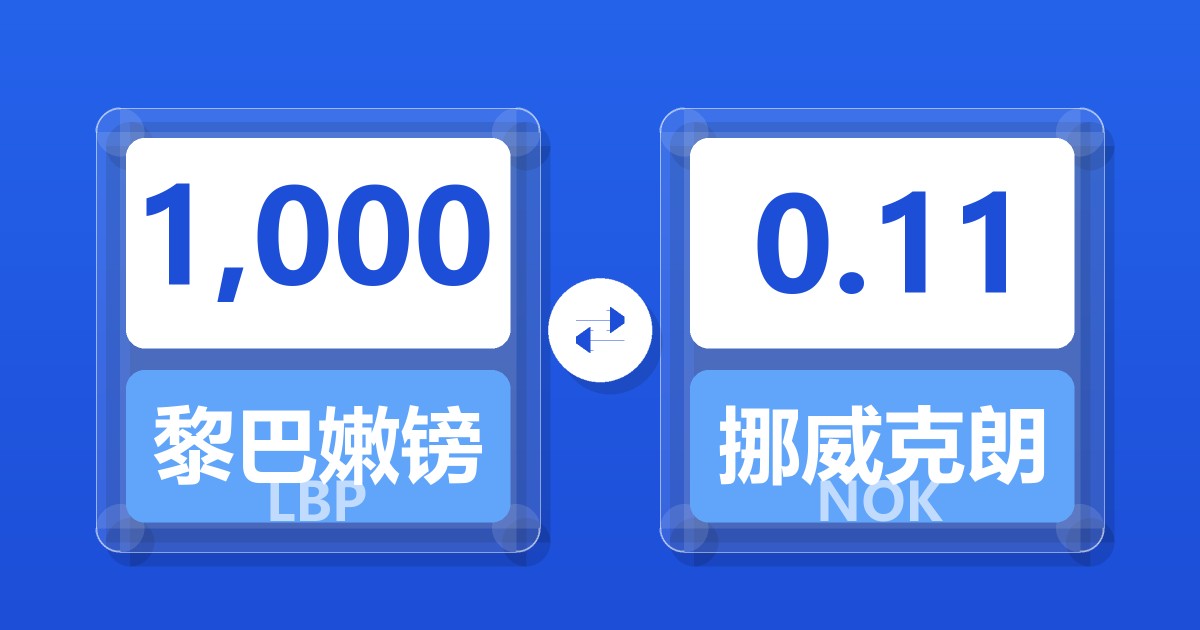 1,000 黎巴嫩镑 (LBP) = 0.11 挪威克朗 (NOK)
