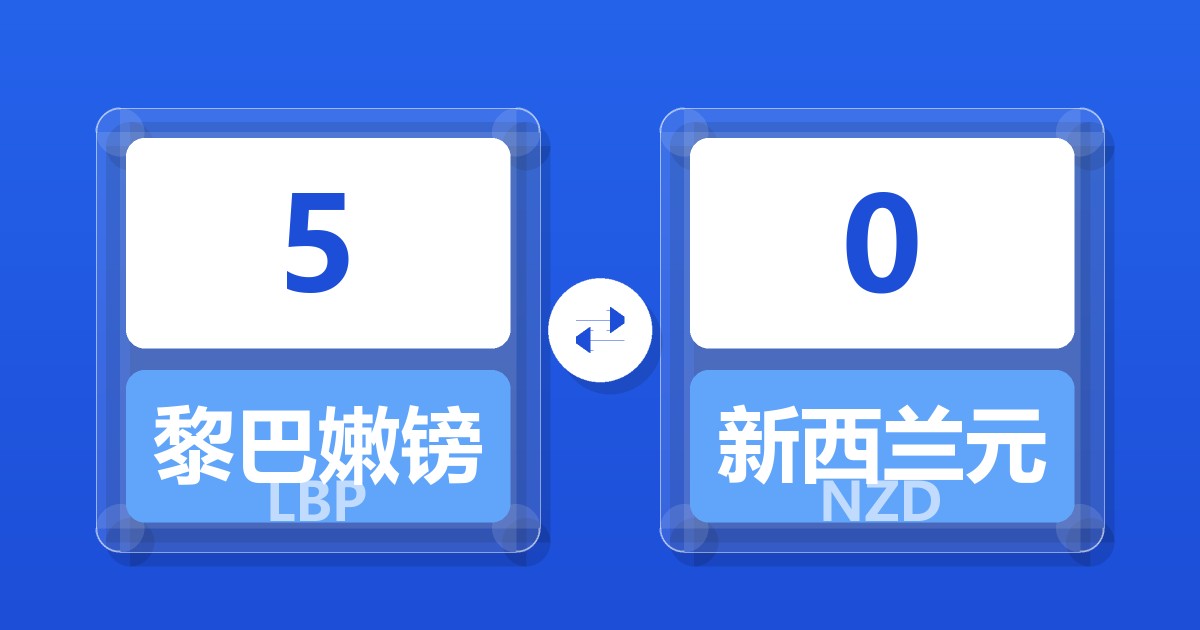 5 黎巴嫩镑 (LBP) = 0.00 新西兰元 (NZD)