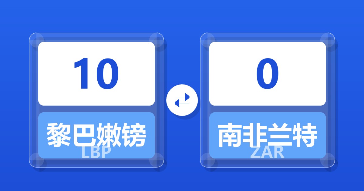 10 黎巴嫩镑 (LBP) = 0.00 南非兰特 (ZAR)