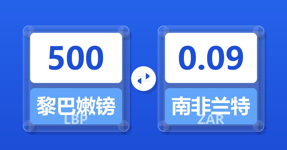 500 黎巴嫩镑 (LBP) = 0.09 南非兰特 (ZAR)