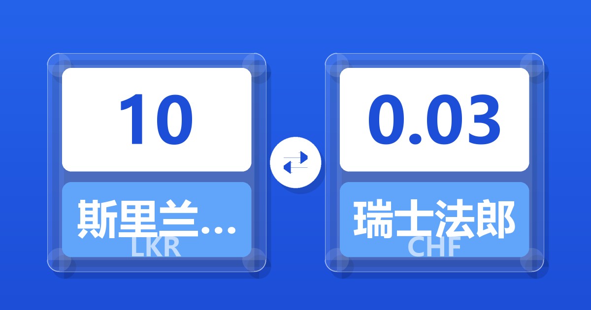 10 斯里兰卡卢比 (LKR) = 0.03 瑞士法郎 (CHF)