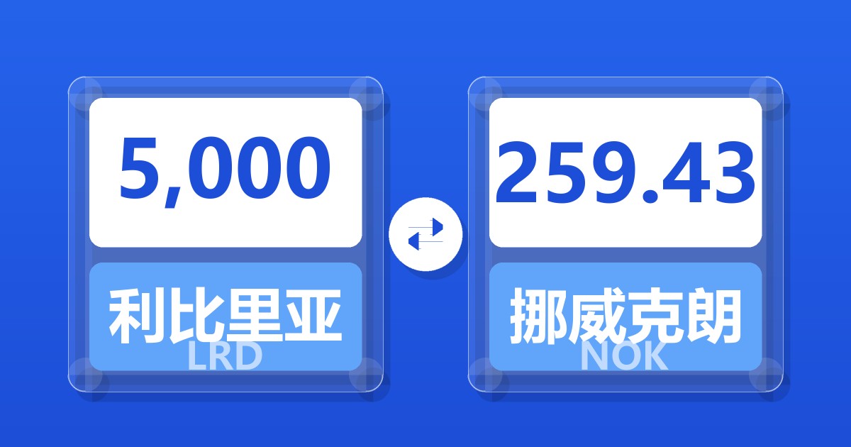 5,000 利比里亚元 (LRD) = 259.43 挪威克朗 (NOK)