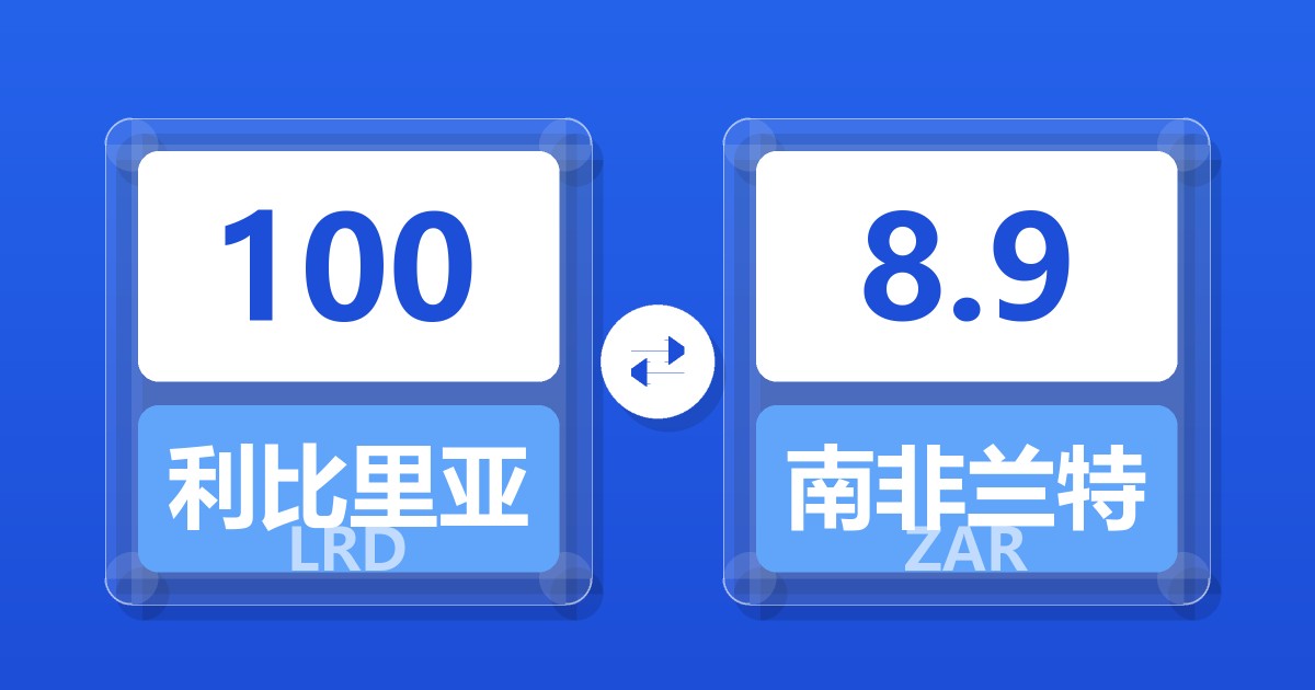 100 利比里亚元 (LRD) = 8.90 南非兰特 (ZAR)