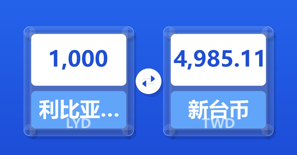 1,000 利比亚第纳尔 (LYD) = 4,957.94 新台币 (TWD)