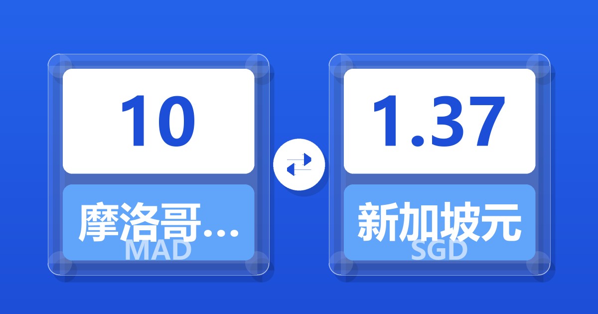 10 摩洛哥迪拉姆 (MAD) = 1.37 新加坡元 (SGD)