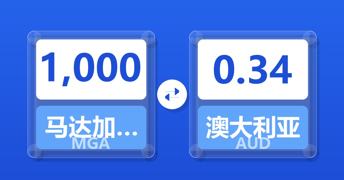1,000 马达加斯加阿里亚里 (MGA) = 0.34 澳大利亚元 (AUD)