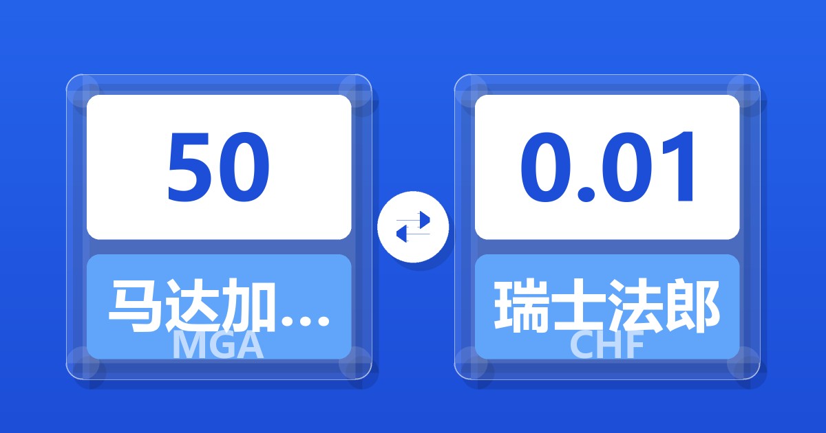 50 马达加斯加阿里亚里 (MGA) = 0.01 瑞士法郎 (CHF)