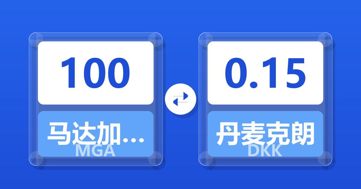 100 马达加斯加阿里亚里 (MGA) = 0.15 丹麦克朗 (DKK)