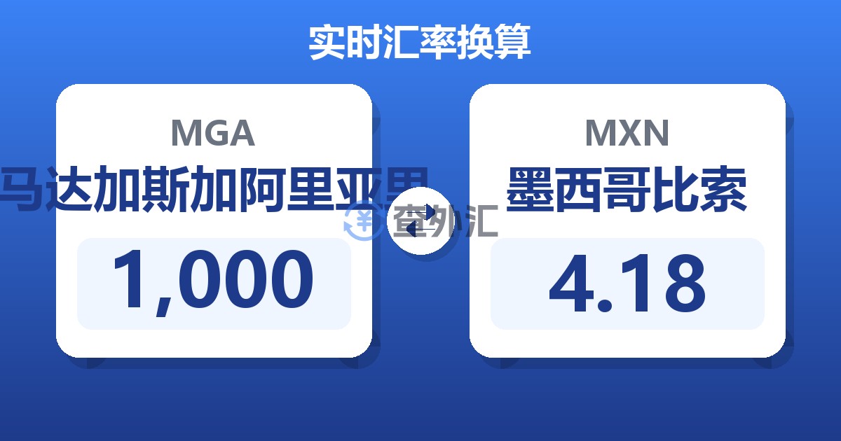 1,000 马达加斯加阿里亚里 (MGA) = 4.19 墨西哥比索 (MXN)