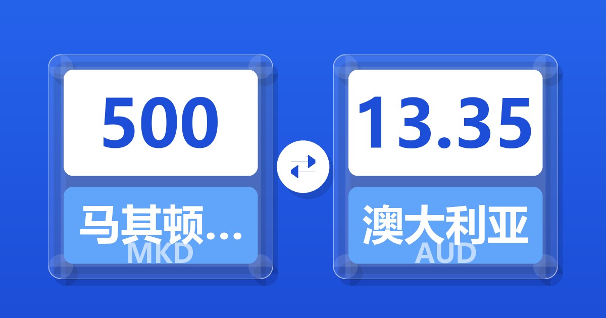 500 马其顿第纳尔 (MKD) = 13.27 澳大利亚元 (AUD)