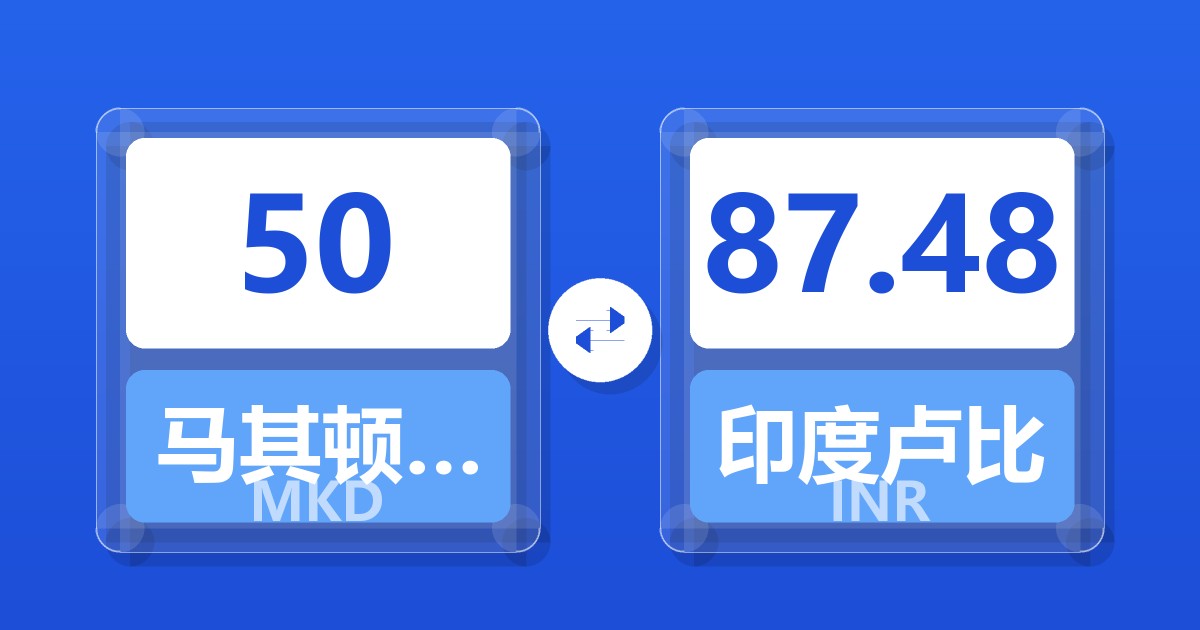 50 马其顿第纳尔 (MKD) = 86.56 印度卢比 (INR)
