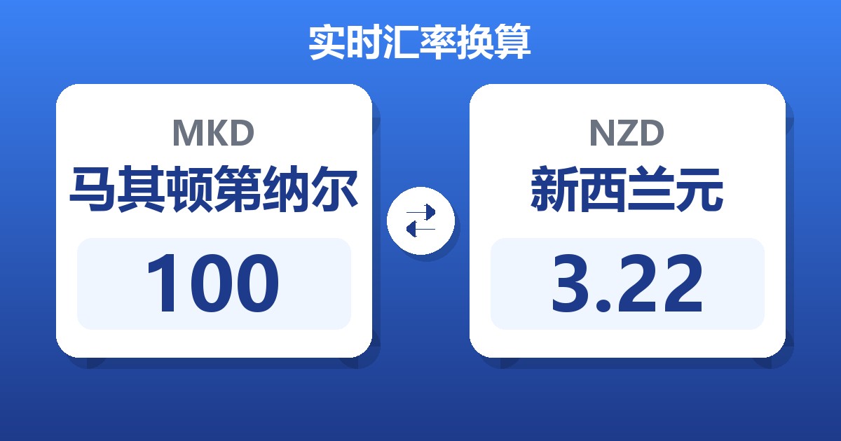 100 马其顿第纳尔 (MKD) = 3.21 新西兰元 (NZD)