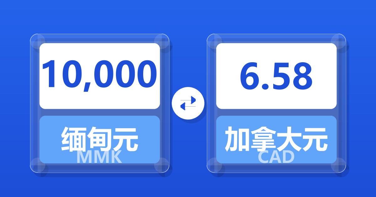 10,000 缅甸元 (MMK) = 6.59 加拿大元 (CAD)