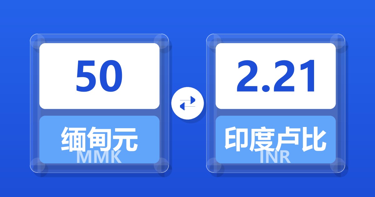 50 缅甸元 (MMK) = 2.20 印度卢比 (INR)