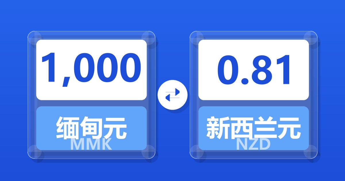 1,000 缅甸元 (MMK) = 0.82 新西兰元 (NZD)