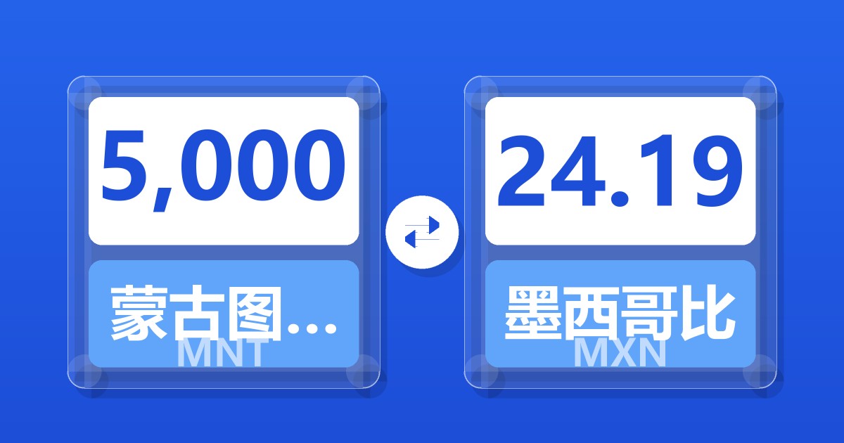 5,000 蒙古图格里克 (MNT) = 24.22 墨西哥比索 (MXN)