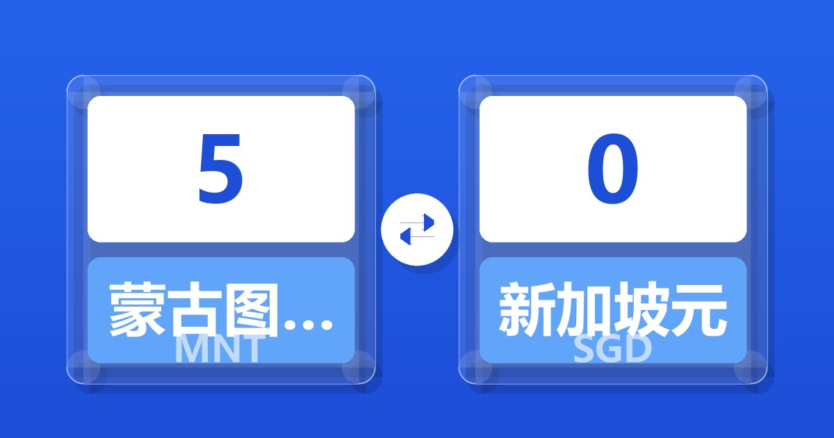 5 蒙古图格里克 (MNT) = 0.00 新加坡元 (SGD)