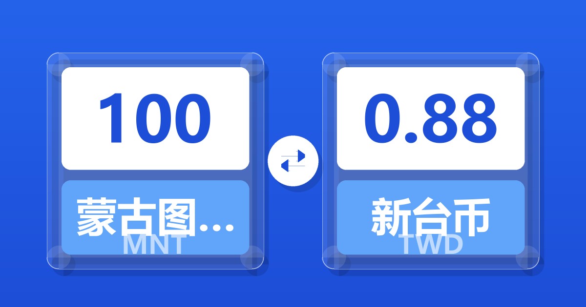 100 蒙古图格里克 (MNT) = 0.88 新台币 (TWD)