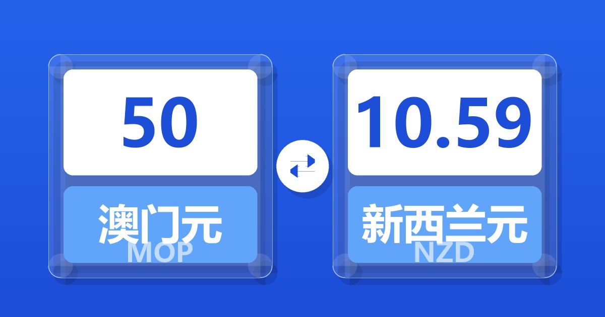50 澳门元 (MOP) = 10.64 新西兰元 (NZD)