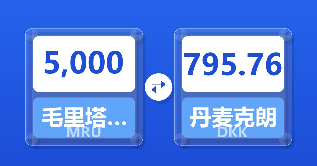 5,000 毛里塔尼亚乌吉亚 (MRU) = 795.63 丹麦克朗 (DKK)