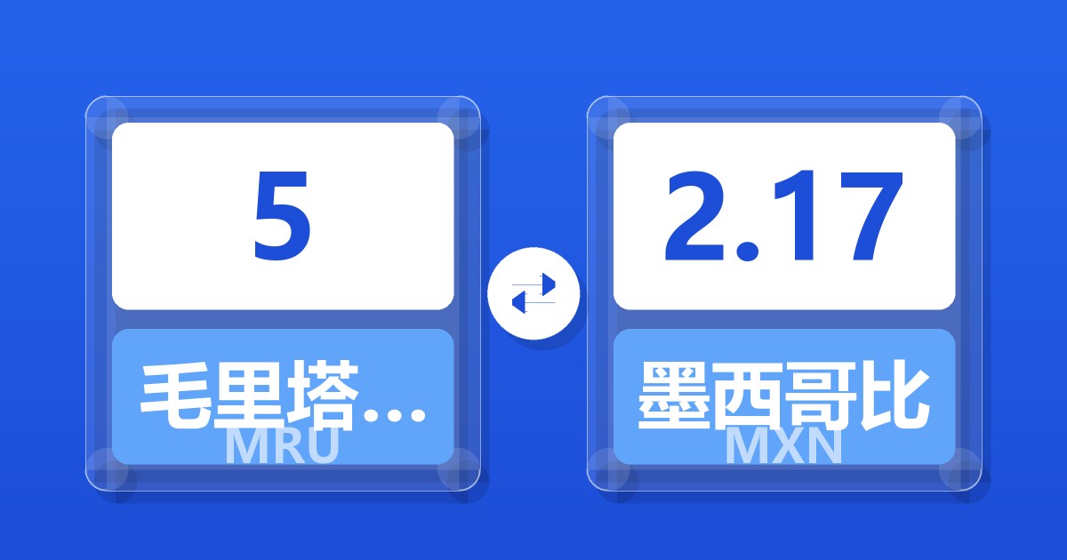 5 毛里塔尼亚乌吉亚 (MRU) = 2.17 墨西哥比索 (MXN)