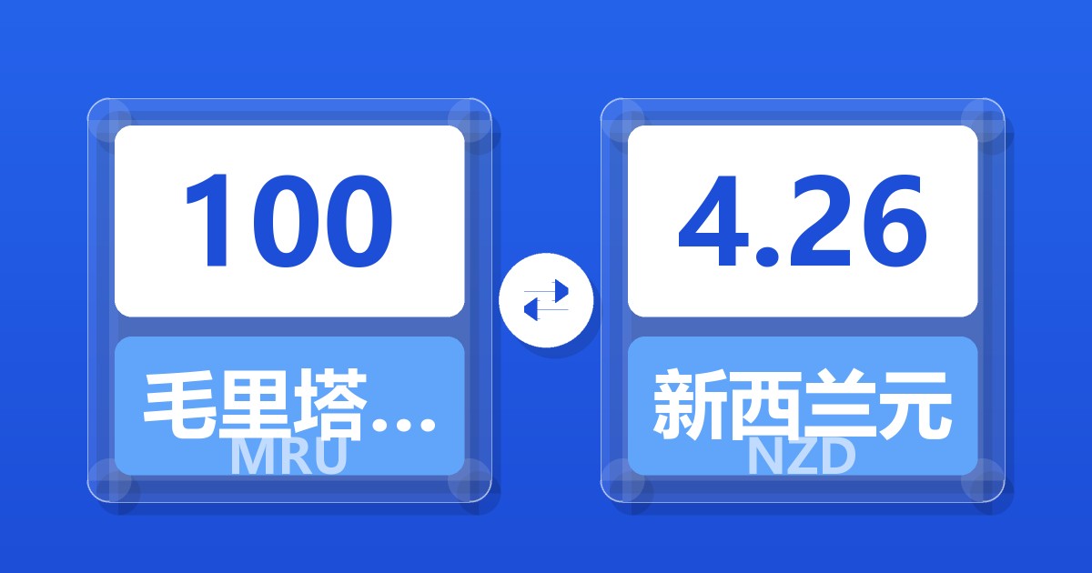 100 毛里塔尼亚乌吉亚 (MRU) = 4.28 新西兰元 (NZD)