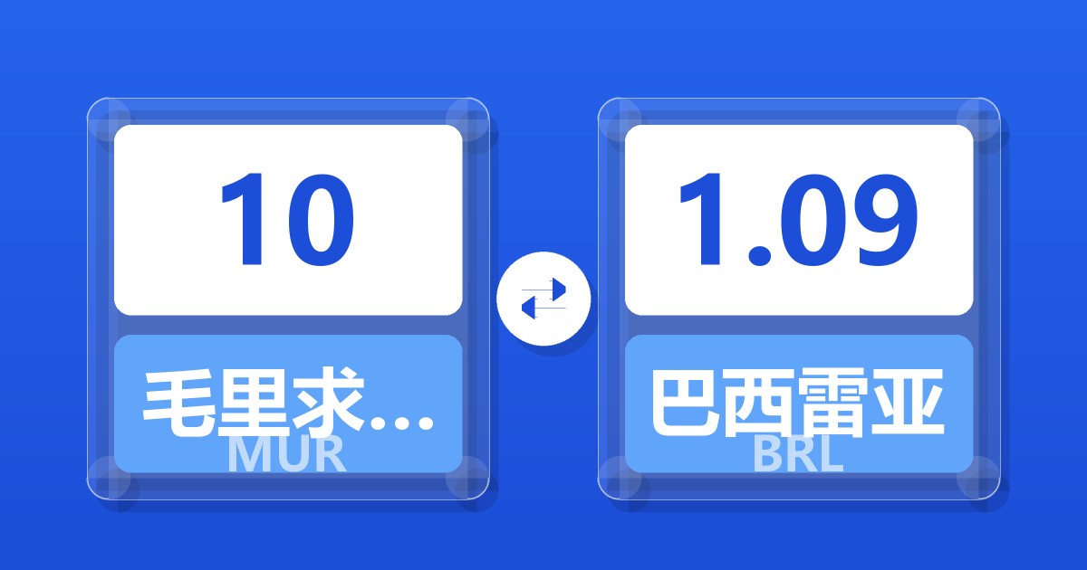 10 毛里求斯卢比 (MUR) = 1.10 巴西雷亚尔 (BRL)