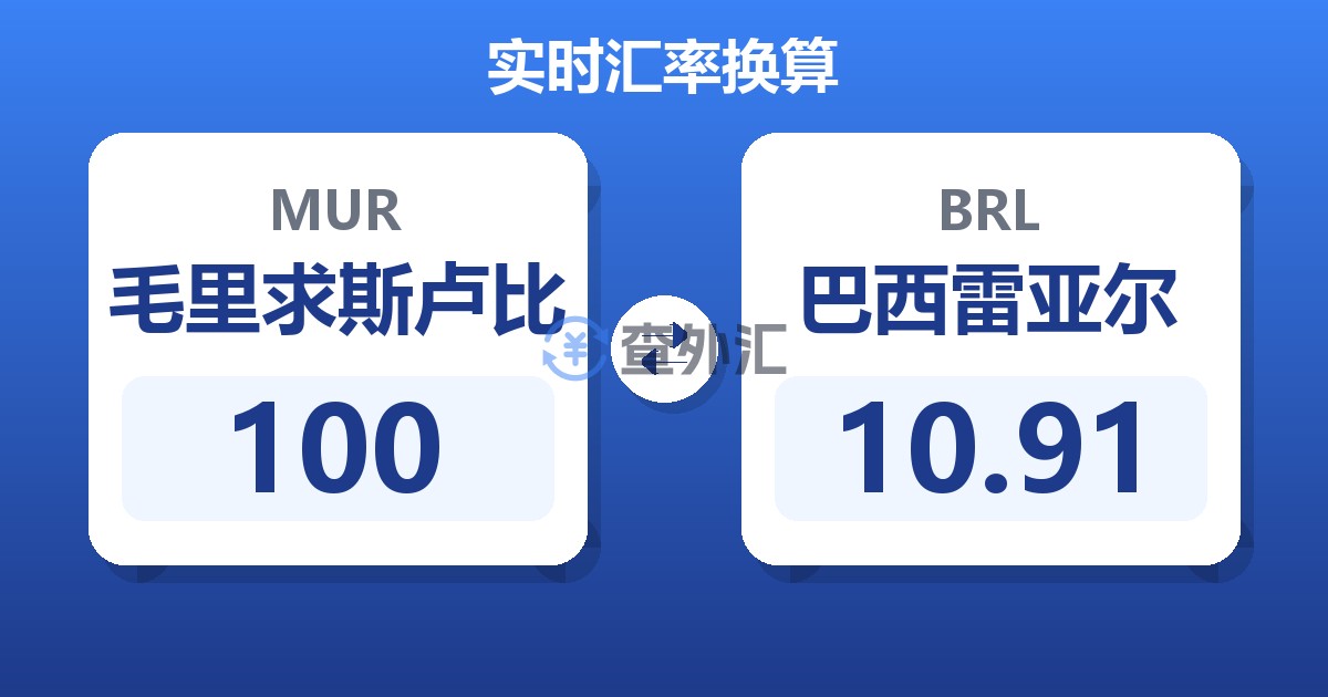 100 毛里求斯卢比 (MUR) = 10.95 巴西雷亚尔 (BRL)