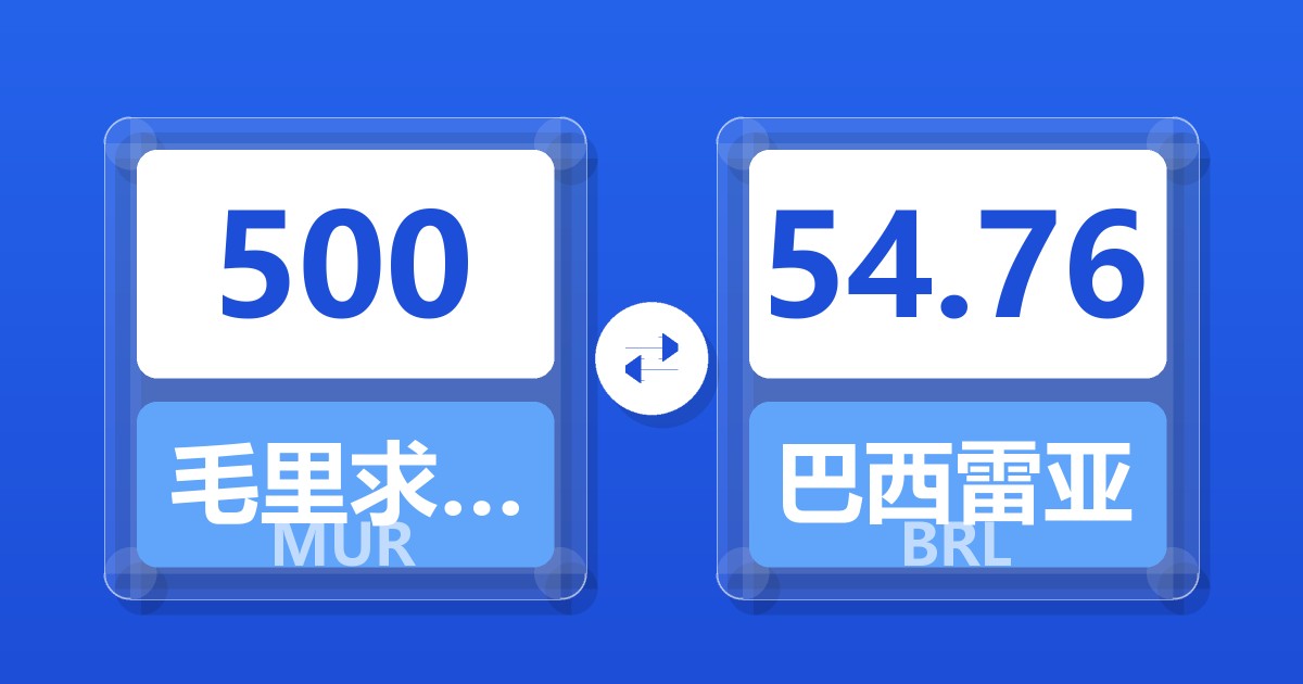 500 毛里求斯卢比 (MUR) = 54.76 巴西雷亚尔 (BRL)