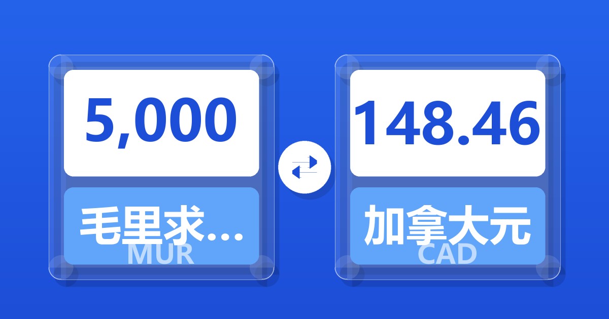 5,000 毛里求斯卢比 (MUR) = 148.60 加拿大元 (CAD)