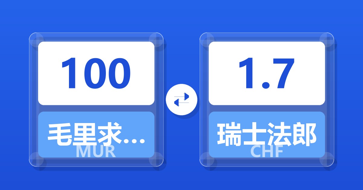 100 毛里求斯卢比 (MUR) = 1.70 瑞士法郎 (CHF)