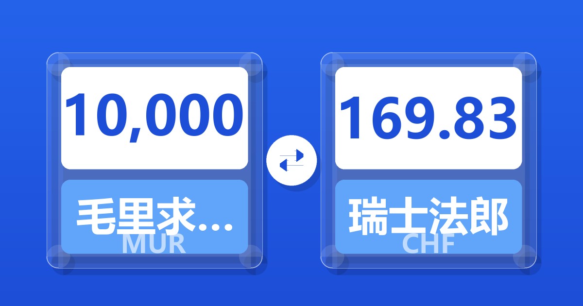 10,000 毛里求斯卢比 (MUR) = 169.67 瑞士法郎 (CHF)