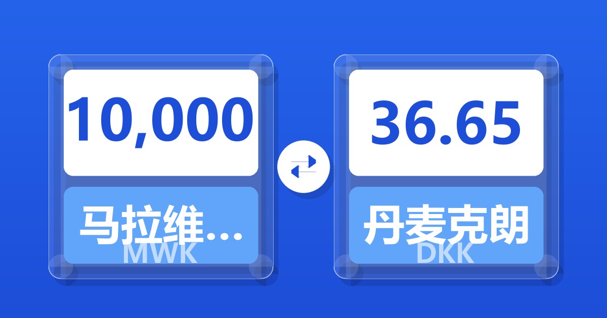 10,000 马拉维克瓦查 (MWK) = 36.68 丹麦克朗 (DKK)