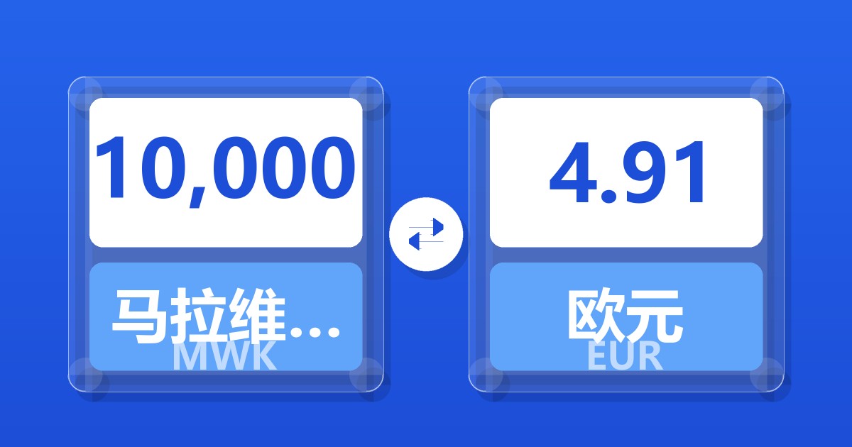 10,000 马拉维克瓦查 (MWK) = 4.92 欧元 (EUR)