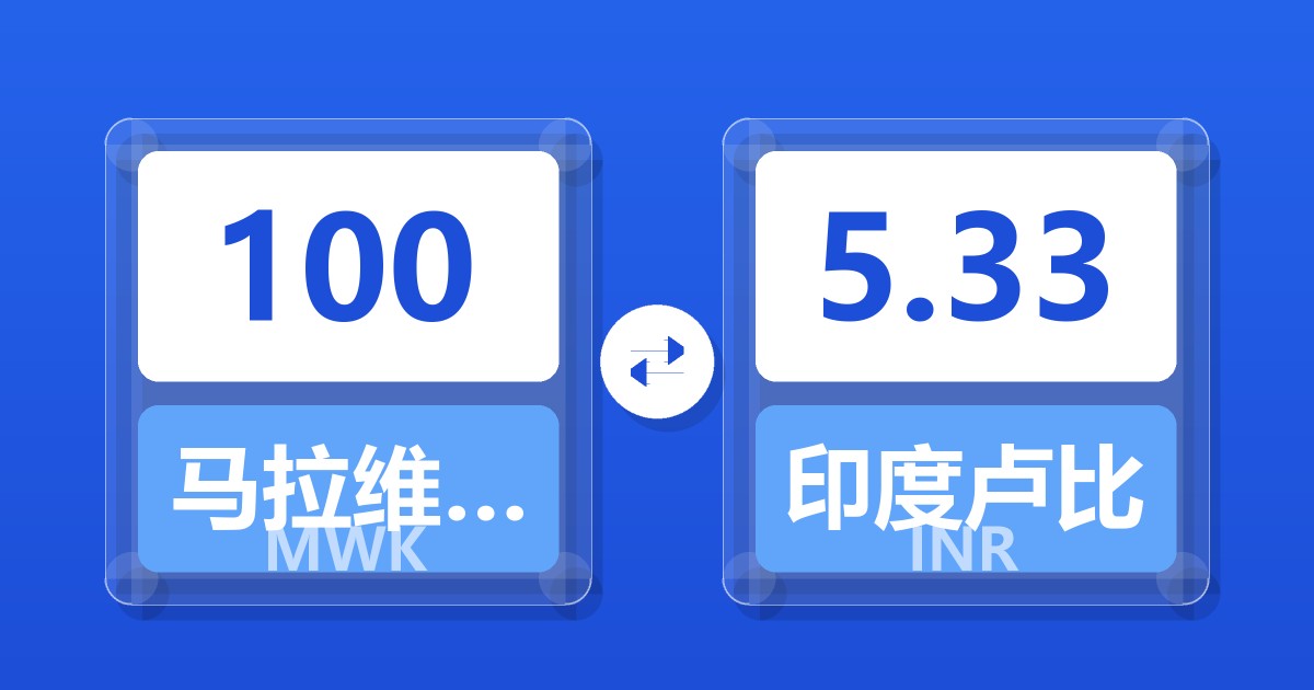 100 马拉维克瓦查 (MWK) = 5.32 印度卢比 (INR)