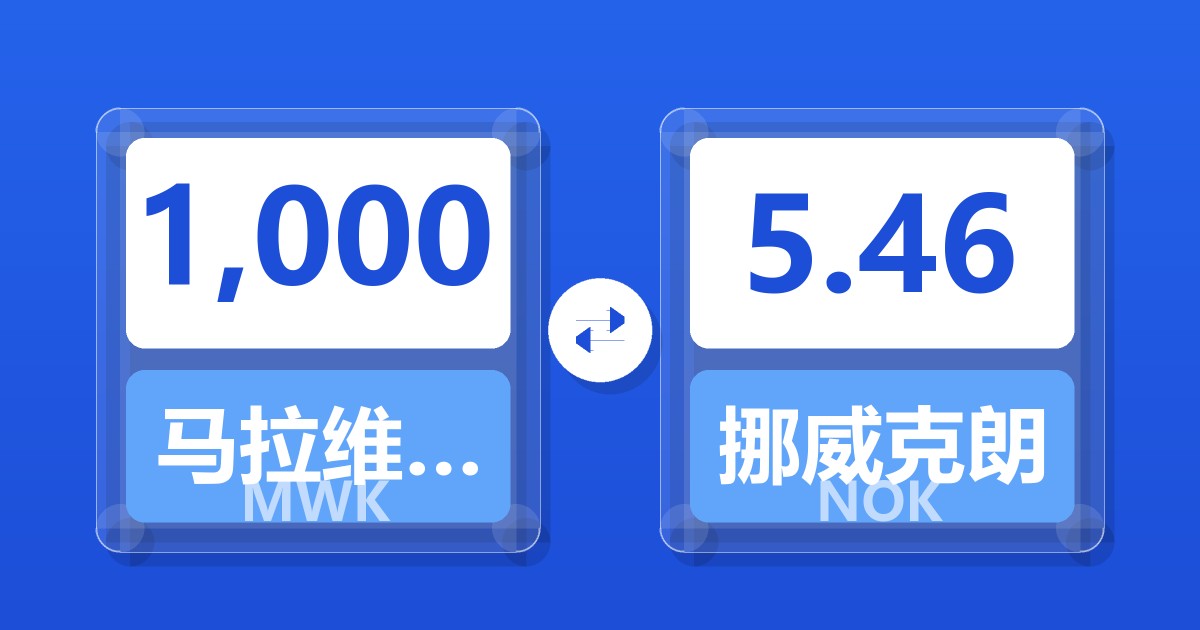 1,000 马拉维克瓦查 (MWK) = 5.49 挪威克朗 (NOK)