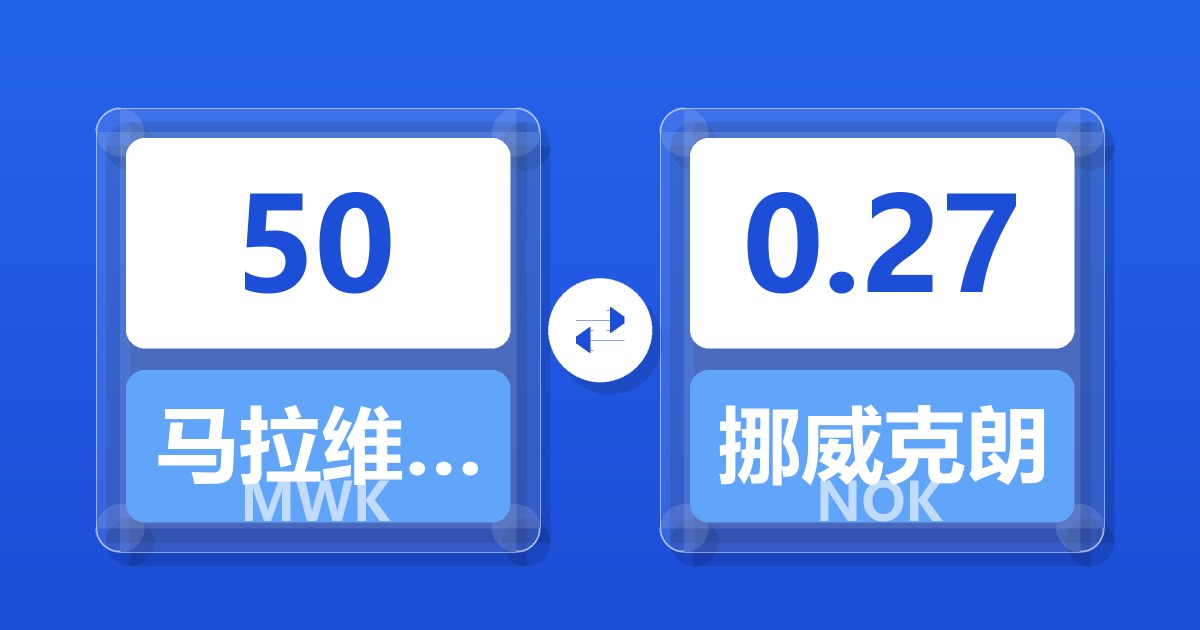 50 马拉维克瓦查 (MWK) = 0.27 挪威克朗 (NOK)