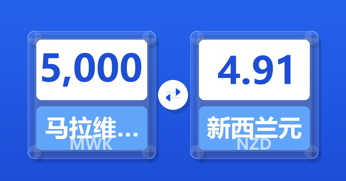 5,000 马拉维克瓦查 (MWK) = 4.93 新西兰元 (NZD)