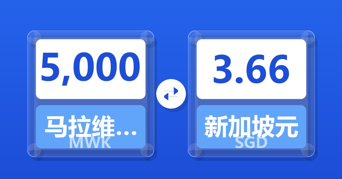5,000 马拉维克瓦查 (MWK) = 3.66 新加坡元 (SGD)
