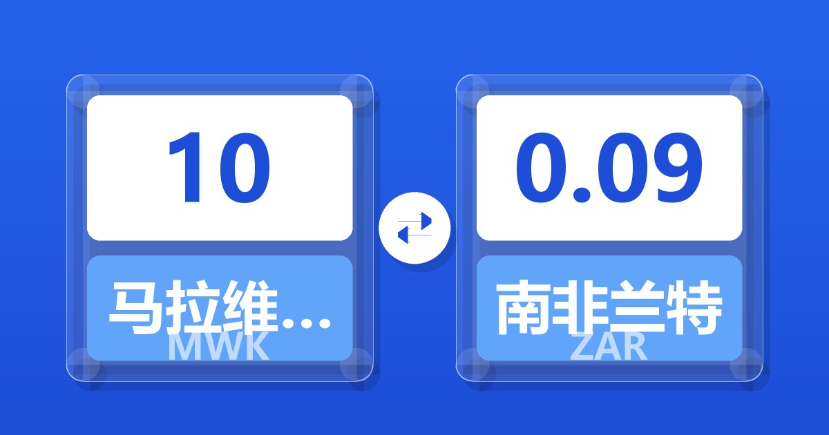 10 马拉维克瓦查 (MWK) = 0.09 南非兰特 (ZAR)