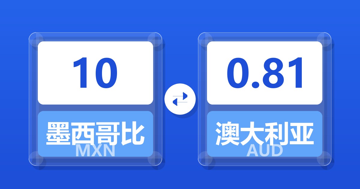 10 墨西哥比索 (MXN) = 0.81 澳大利亚元 (AUD)