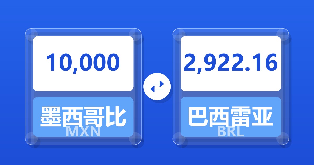 10,000 墨西哥比索 (MXN) = 2,926.59 巴西雷亚尔 (BRL)