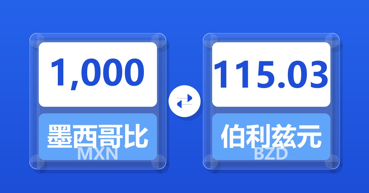 1,000 墨西哥比索 (MXN) = 114.71 伯利兹元 (BZD)