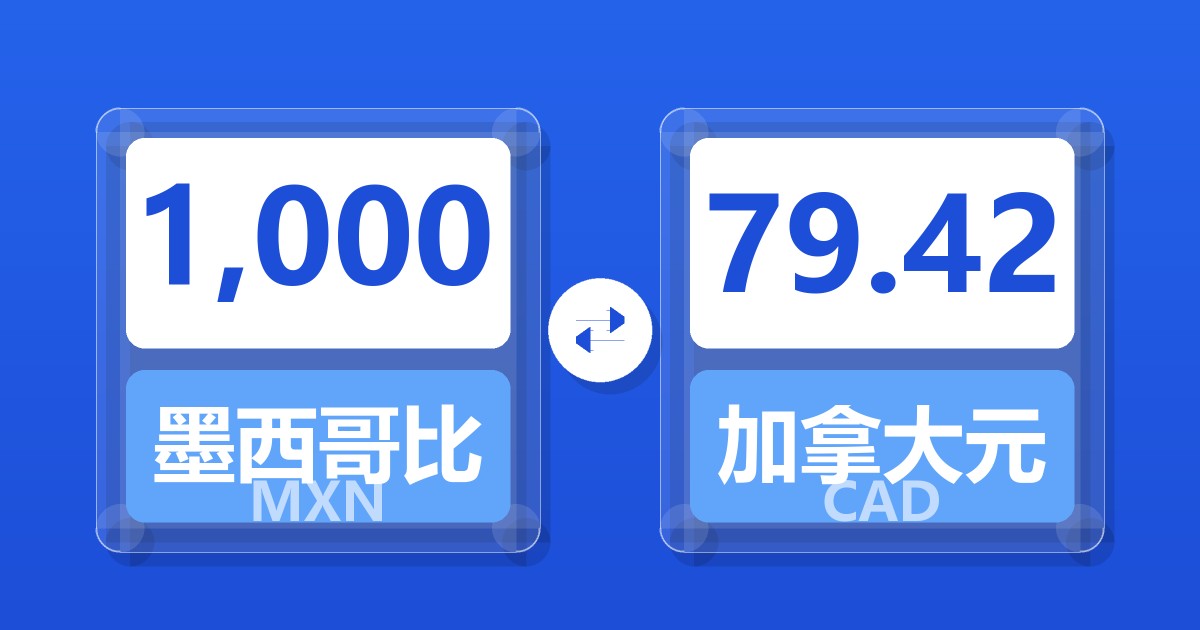 1,000 墨西哥比索 (MXN) = 79.42 加拿大元 (CAD)