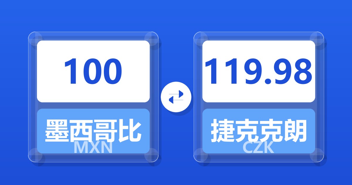 100 墨西哥比索 (MXN) = 119.84 捷克克朗 (CZK)