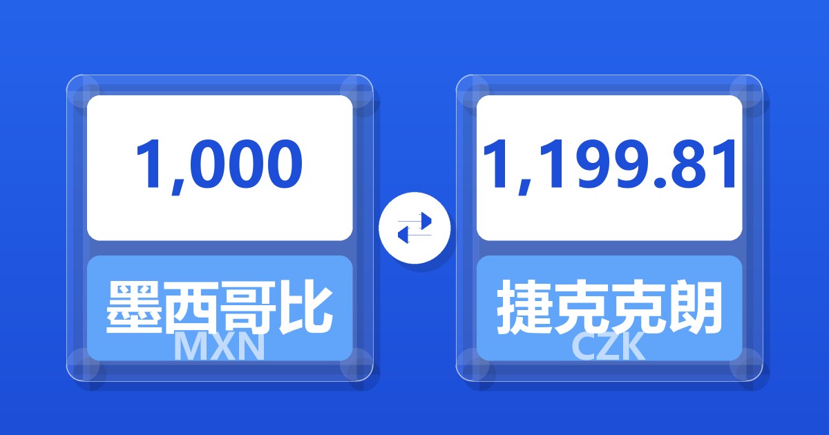 1,000 墨西哥比索 (MXN) = 1,198.41 捷克克朗 (CZK)