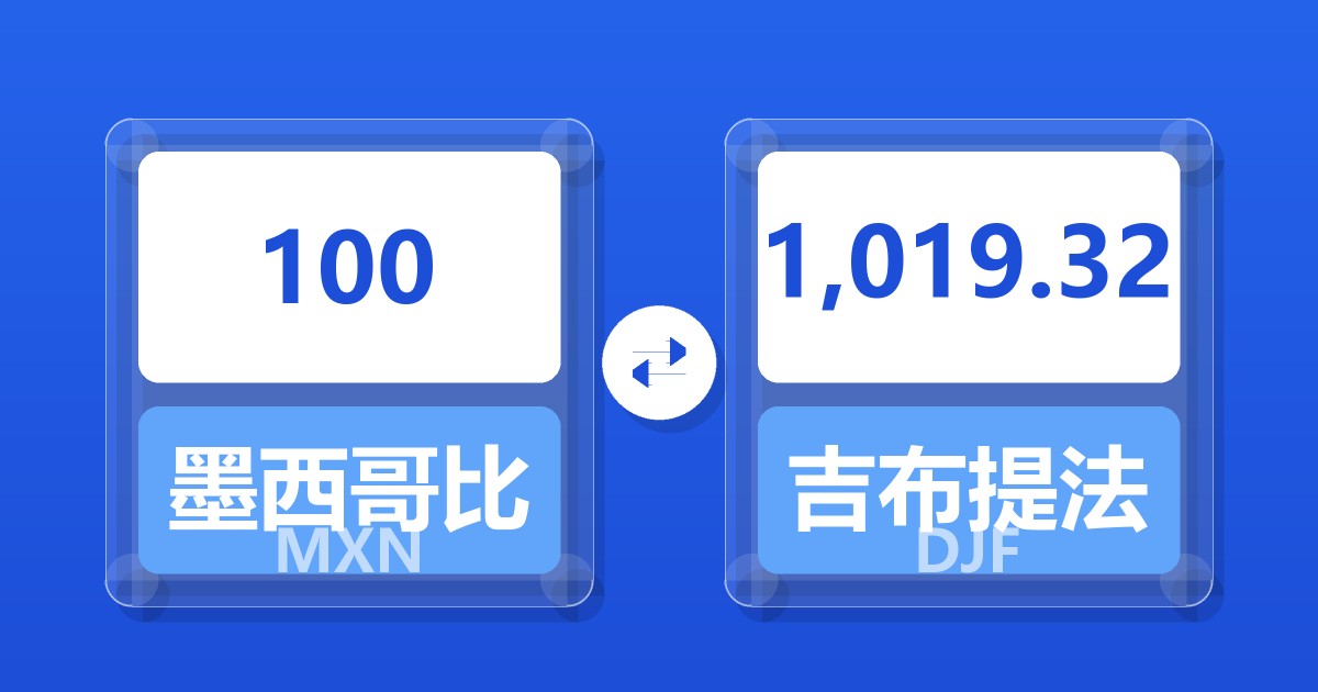 100 墨西哥比索 (MXN) = 1,019.32 吉布提法郎 (DJF)