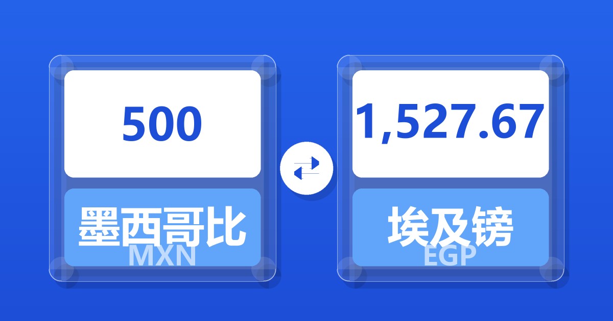 500 墨西哥比索 (MXN) = 1,529.09 埃及镑 (EGP)