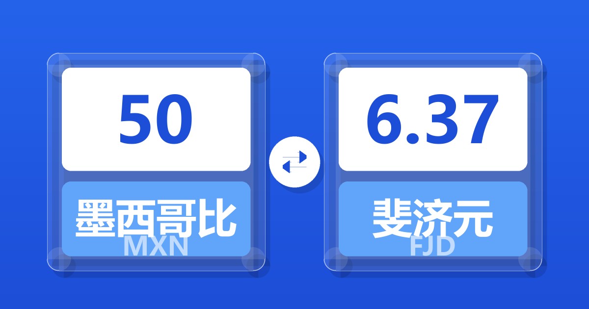 50 墨西哥比索 (MXN) = 6.36 斐济元 (FJD)